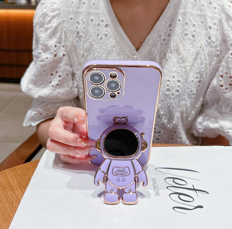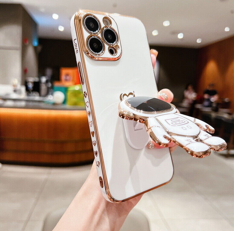 For iPhone 13 12 Pro Max 11 XR XS 7 8 Plus SE Plating Astronaut Stand Case Cover