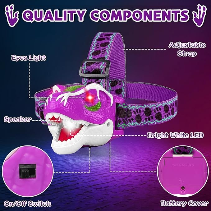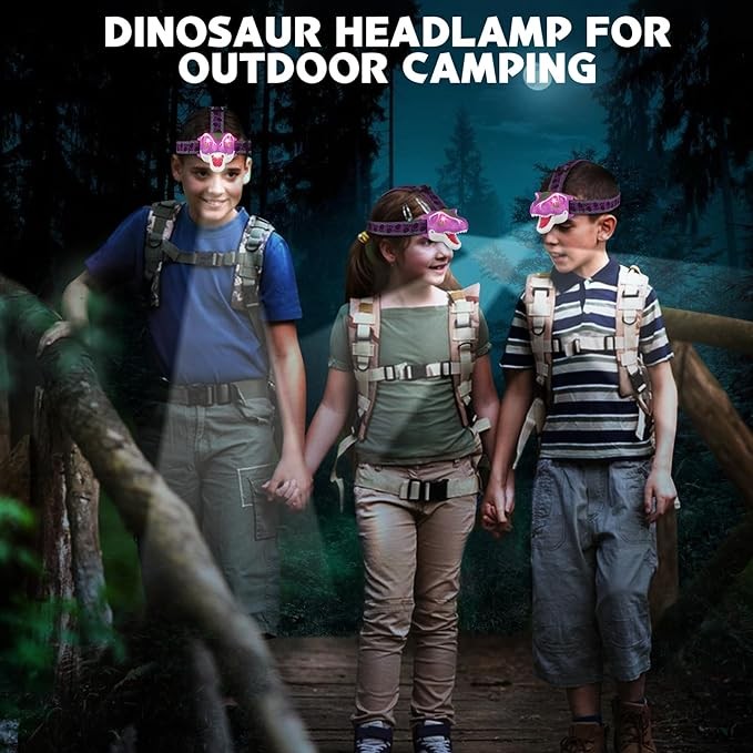 • 【T-Rex Dinosaur Headlamp】 This dino headlamp is the latest design tyrannosaurus rex headlamp for children. It's a perfect gift for any boys, girls or toddlers who loves dinosaur and outdoor exploration activities!