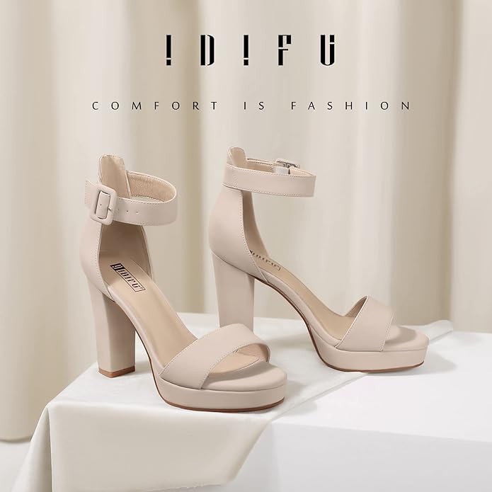 IDIFU Women's IN4 Sabrina Platform Chunky High Heels Ankle Strap Heeled Sandals Wedding Party Dress Shoes