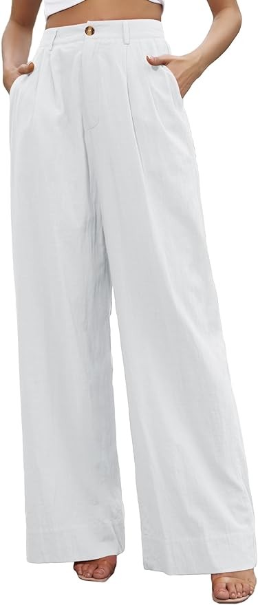 【Classic &Comfort】Note: Apricot Linen pants need to wear light-colored underwear, there will be a slight see-through, mind please buy other colors!Wide leg linen pants for women are made of high quality linen & cotton blend fabric, flowy beach pants lightweight and soft, skin-friend, high waisted wide leg pants for women suitable for spring, summer and fall.