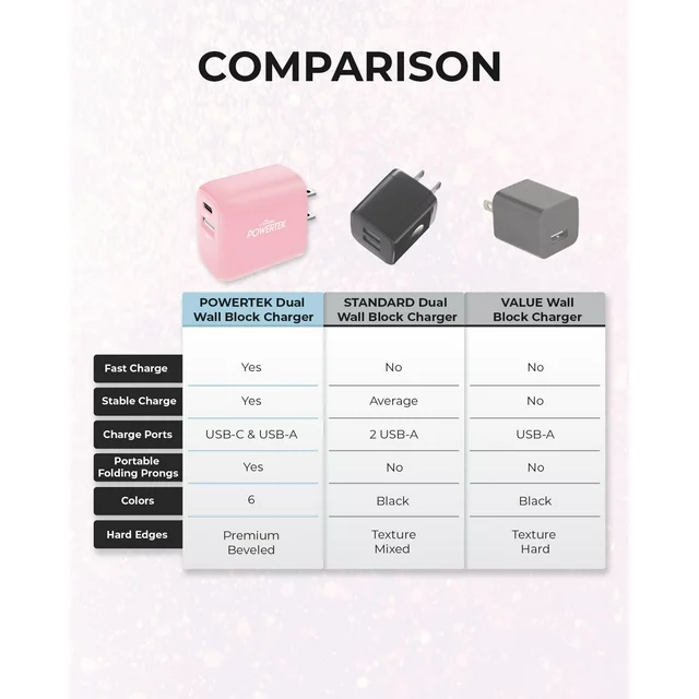 • Dual Ports: USB-C & USB-A Wall Charger Block