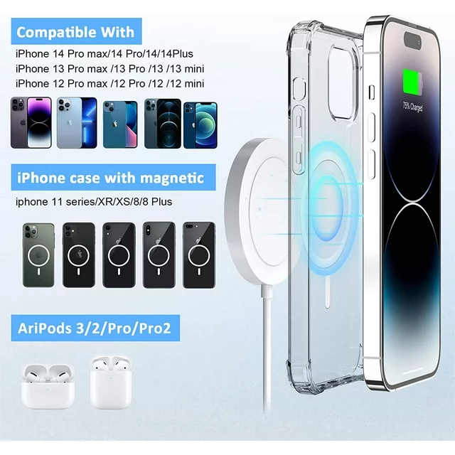 【Specifically Compatible with iPhone 15/14/13/12 Series】With New magnetic technology makes wireless charging a snap. Perfectly wireless charging pad compatible with mag-safe charging compatible with iPhone 15/15pro/15plus, compatible with iPhone 14, compatible with iPhone 14 Pro, compatible with iPhone 14 Plus, compatible with iPhone 14 Pro Max, compatible with iPhone 13,13 Pro,13 Pro Max,13 mini; compatible with iPhone 12, compatible with iPhone 12 Pro, compatible with iPhone 12 mini compatible with iPhone 12 Pro Max.Up to 7.5W secure wireless charging. And with models of AirPods Pro /3 & 2 with a wireless charging case.