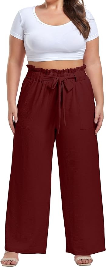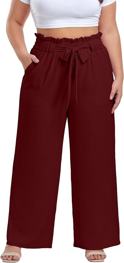 • 【 Stylish Design】: Wide leg pants are designed in plus size, straight wide leg, ruffled elastic high waist with belt and two deep pockets for mobile phones, wallets, keys, etc. Even if you have a curvy figure, or have thick calves and thighs, flowy pants can work well for any shape. High waisted wide leg pants can modify your leg shape, making you look taller and slimmer. The belts on both sides of the waist play a very good decorative role. You can tie it up or hang it down, elegant and casual.