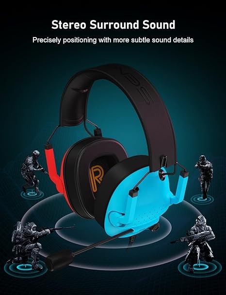SENZER SG500 Surround Sound Pro Gaming Headset with Noise Cancelling Microphone - Soft Memory Foam Padding - Portable Foldable Headphones for PC, PS4, PS5, Xbox One, Switch - Red&Blue