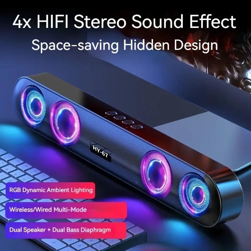 Wireless Speaker, 4 Sound Holes, 6D Surround Sound, Shocking Heavy Bass, RBG Color, Long Strip, Easy To Store And Save Space, Desktop Audio/computer Speaker/car Speaker/cycling Speaker/camping Speaker