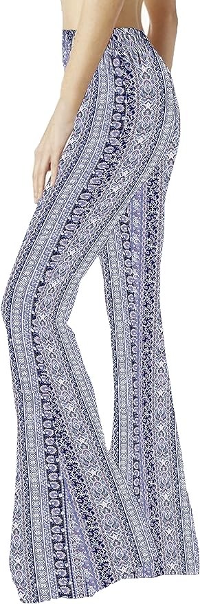 • Vintage Boho Style, Floral Ethnic Tribal Print, stretchy, high and elastic waist, soft and comfortable Fold-Over, Flare Bell Bottom Pant Elastic Wasitband, Lightweight, Stretch and Breathable.